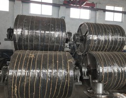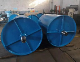 傳動(dòng)滾筒鋼接盤(pán)與筒體用V型焊接坡口焊接,重型滾筒的接盤(pán)由高強(qiáng)度球鐵鑄鋼制成,接盤(pán)軸套等焊接坡口均為機(jī)加工,焊接后做消除應(yīng)力處理并進(jìn)行焊縫進(jìn)行100℅無(wú)損傷和25℅X射線拍片檢查,組裝后進(jìn)行靜平衡試驗(yàn),精度達(dá)GB/T9239.1-2006中G40標(biāo)準(zhǔn)。
