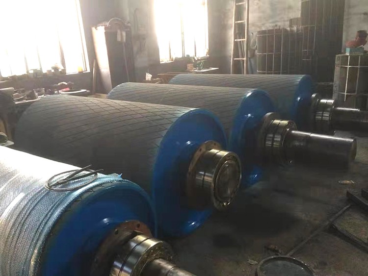 傳動滾筒是輸送機傳遞動力的部件。傳動滾筒表面有裸露光鋼面,人字形和菱形花紋橡膠覆面。小功率、小帶寬及環(huán)境干燥時可采用裸露光鋼面。人字形花紋膠面摩擦系數(shù)大,防滑性和排水性好,但有方向性。菱形膠面用于雙向運行的輸送機。